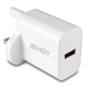 The Lindy 18W USB Type A Charger can charge a single USB device with a maximum power of 18W. It supports fast charging for many popular smartphones and other mobile devices.